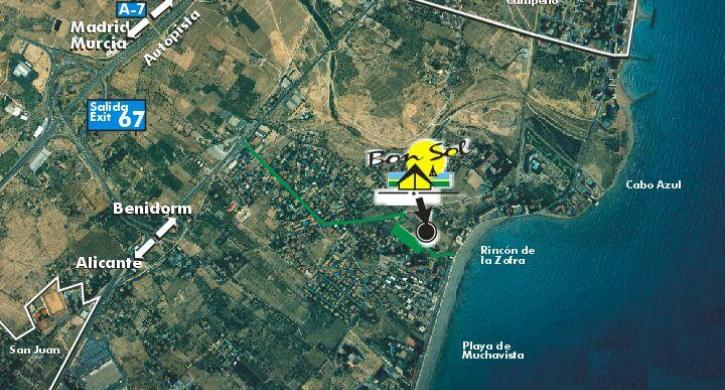 Bon Sol Camping liegt 100 Meter vom Strand in El Campello (wo ist der Strand Punta del Riu, zugänglich Hund ganzjährig), in einer idealen Lage in der Nähe zum Meer, die Berge Alicante (die Ausläufer -Subsystems Berg Betico Anfangsbuchstaben, zum Beispiel, Karsthöhlen Canelobre in Busot, 10 km), öffentliche Verkehrsmittel und Einkaufsmöglichkeiten.