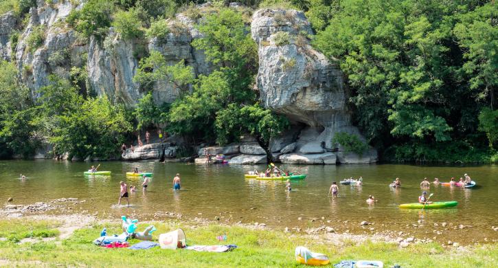 Der Campingplatz Mazet-Plage liegt am Rande des Waldes Bois de Païolive am Ufer des Chassezac.