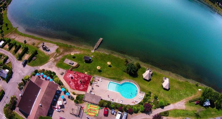 Von Bergen eingerahmt und dem See gelegen, bietet Ihnen der ruhige Campingplatz alle Serviceleistungen, beheizter Pool, Tennis, Spiele, Privatstrand, zahlreiche Sportaktivitäten.Kanu, Paddel, Tretboote