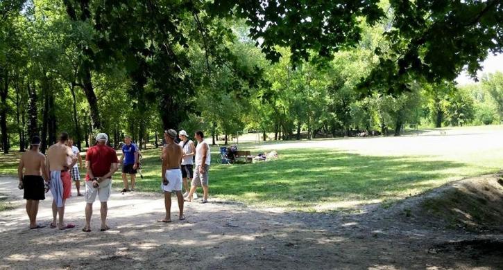 parken angelegten Picknick und Spiele für Kinder und Bowling mit nur 5 Minuten Schwimmen im Fluss.