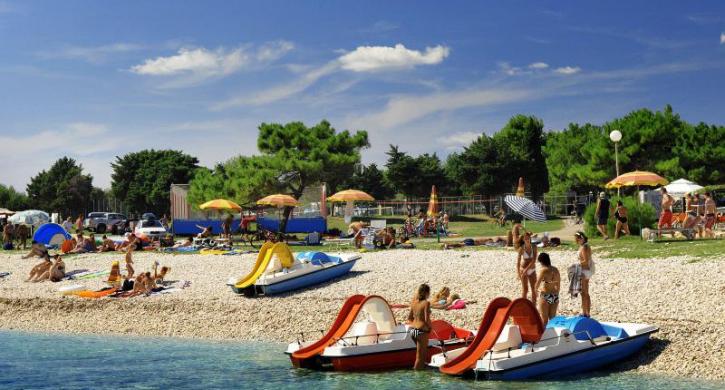 Der Campingplatz Kažela Medulin liegt idyllisch in Istrien an der blauen Adriaküste und ist der perfekte Ort für erholsame, naturnahe Ferien. Der Campingplatz in Kažela Medulin ist über die Jahre besonders beliebt geworden, denn er bietet Gästen eine konkurrenzlose Zahl an Einrichtungen und einen 2 km langen Strand mit vielen Arealen zum Sonnenbaden. Der Camp Kažela Medulin ist ein weitläufiges Gelände mit einigen der größten Stellplätzen in der Region. Er liegt teils in bewaldetem Gebiet, teils auf einer Wiese und verfügt über einen eigenen FFK-Strand. Gäste können die vielfältigen Unterhaltungs- und Sportangebote sowie die Flächen zum Sonnenbaden nutzen. Und die kleinen Gäste vergnügen sich in den Aquaparks auf den zwei Terrassen am Meer.
