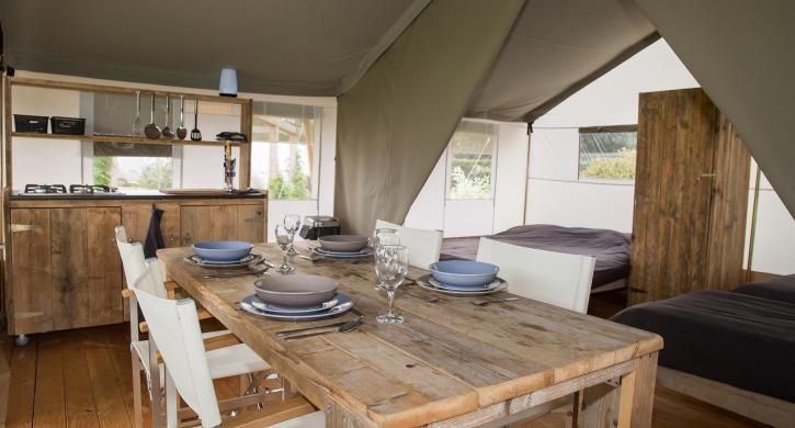 Camipng Wedze verbirgt sich in der charakteristischen Landschaft mit Blick auf die Kirche aus dem 13. Jahrhundert.