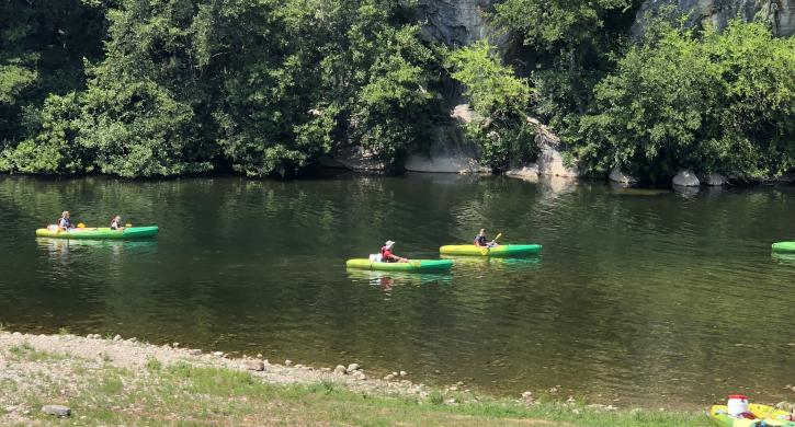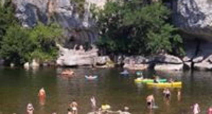 Der Campingplatz Mazet-Plage liegt am Rande des Waldes Bois de Païolive am Ufer des Chassezac.