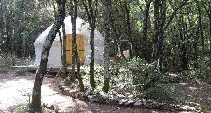 Unser Campingplatz verfügt über 33 Stellplätze, ausgestattete Jurten, einen Biwak- und Gruppenbereich und 2 Sanitäranlagen, von denen eine aus 5 individuellen Bäder (Waschbecken, Dusche, Toilette) mit heißem Wasser besteht. Neben Ihrer Jurte haben Sie im Küchenbereich die Möglichkeit, Ihre eigenen Mahlzeiten zuzubereiten. Die Jurten sind mit Kerzen ausgestatten, ein Stromanschluss ist mit Aufpreis möglich. Hier können Sie sich erholen, die Natur genießen, die umliegende Region mit ihren lokalen Produkten entdecken, schwimmen oder einfach nichtstun.