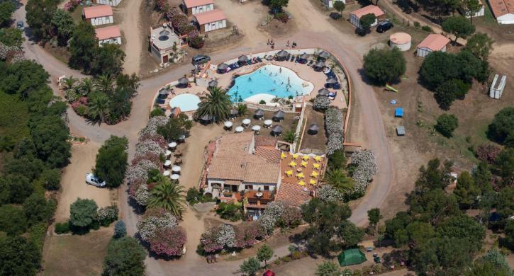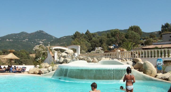 Ruhiger Campingplatz mit Schwimmbad in Propriano auf Korsika, in Strandnähe. Keine Animation.