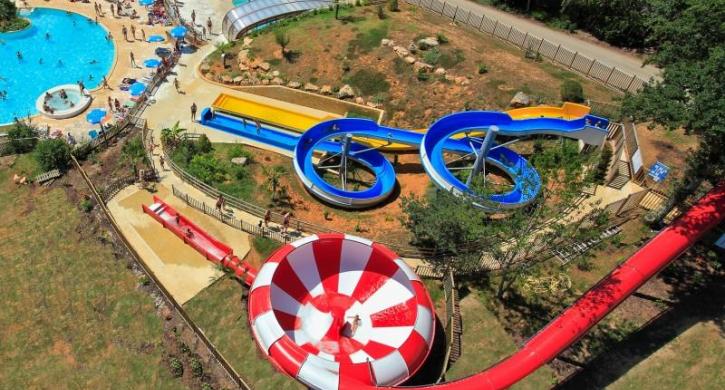 Der Wasserpark des Campingplatzes umfasst ein beheiztes Außenschwimmbecken, ein überdachtes und beheiztes Schwimmbecken, ein Planschbecken mit Rutsche für Kinder, zwei Rutschen für die Großen, zwei Erlebnisrutschen, den SpaceBowl und den Crazy Cone, sowie einen Teich, der von einem schönen Sandstrand gesäumt wird (Baden und Angeln erlaubt).