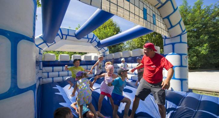 Der Wasserpark besteht aus einem schönen Schwimmbad mit Sandstrand und es gibt auch eine Schwimmhalle mit Schwimmbecken, einer großen Rutsche und einem Planschbecken mit Wasserspielplatz. Das Dach lässt sich aufschieben, so dass Sie bei jedem Wetter schwimmen können!