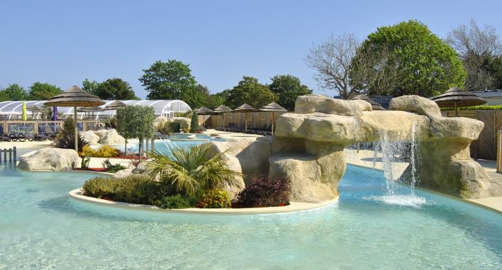 Relaxation and laughter with the family with the two indoor swimming pools, the covered water play area dedicated to children and the outdoor water park: water play area, 2000 m² equipped with multi-slide slides, hydromassage bath, children's lagoon, swimming pool and running river. As soon as the campsite opens, the two indoor swimming pools and the outdoor water park are heated, and you can enjoy all our entertainment and services available. Let your children have free fun at the mini-club and get a real thrill with our adventure park and our day and evening activities for the whole family (tree climbing, horse riding, sauna, surfing, wildlife discovery hike, concert, foam party...).